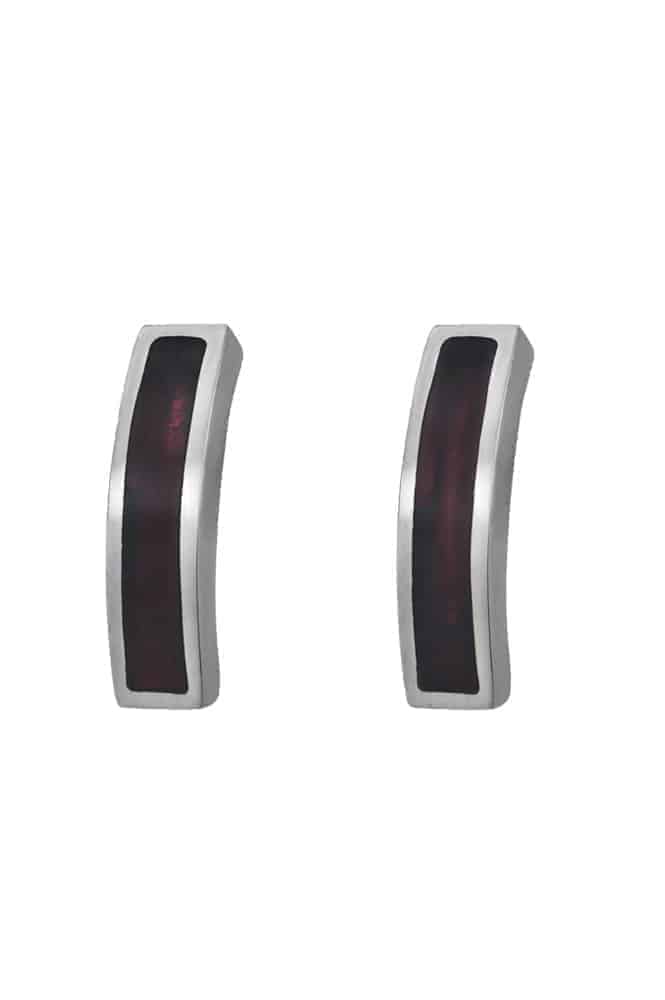 Sophisticated in style, these delicately curved rectangular earrings are crafted of 100 percent authentic Baltic amber, brought lovingly by hand from Poland to the United States. Sterling silver gleams along the outside edge of the uniquely cut stone, a deep coffee-colored amber formed over millions of years in the Baltic region of northeastern Europe.